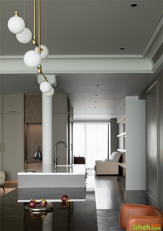 木質(zhì)與大理石構(gòu)筑的空間簡約而有質(zhì)感,金屬和皮質(zhì)穿插其中,蘇州大平層設(shè)計渲染出精致高雅的用餐氛圍。