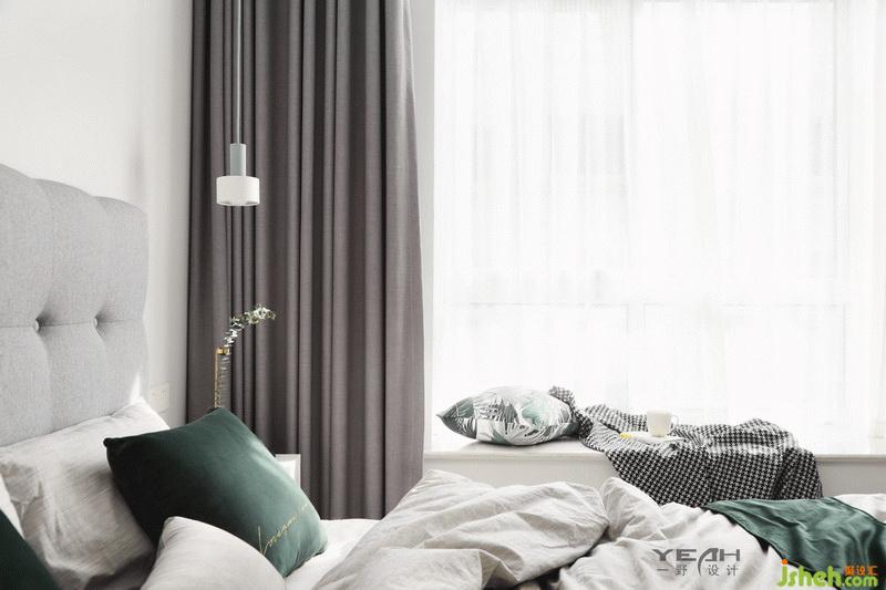 窗臺(tái)旁與床尾都擺放了綠色植物,清新自然,令人倍感舒暢