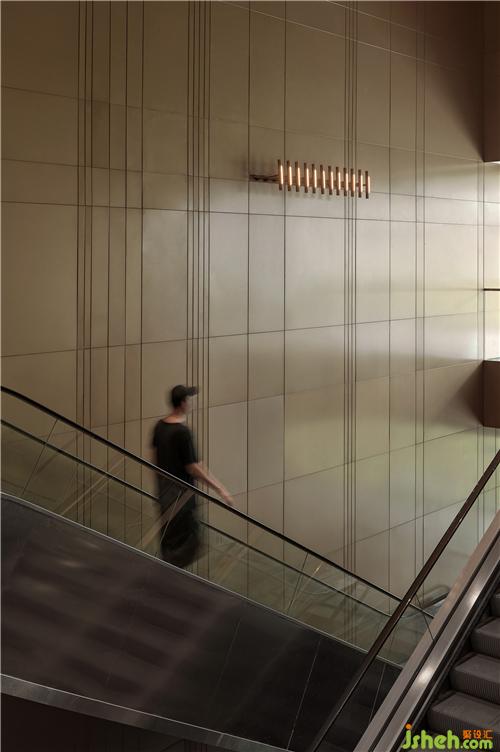 影廳的通道中,室內設計師將琴弦的概念延伸進來,天花上的燈具和地面的拼花,也圍繞著“琴弦”的設計展開,隨處可見的“琴弦”一樣的壁燈和天花燈在走道中延伸開來。巨幕影廳中的設計尤為壯觀,大空間中,從天花延伸下來的“琴弦”,以不同高度的排列在一起,連接著地毯的圖案。并且設計師將傳統(tǒng)的護欄造型改造得更加巧妙,好似琴弦排列開來,同時也注重到護欄的安全性能。以此來體現(xiàn)該影城的獨特電影院設計之處。