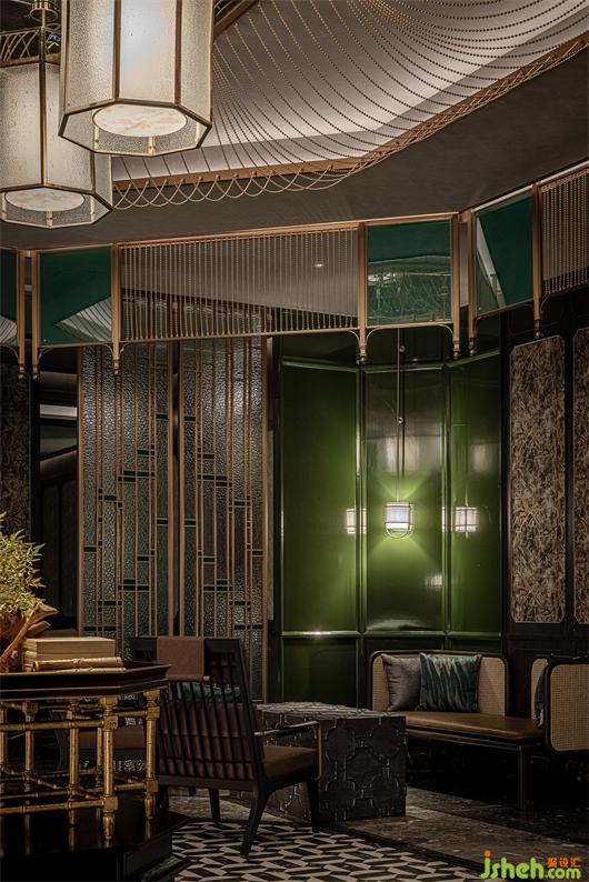 The material selection is mainly based on nostalgic texture. The deep stone and wood veneer, with bronze gold and dark green as the space to set off the retro tone. The combination of mosaic tiles, mottled embroidered mirrors, and colorful wallpaper make the environment richer and diversified, and also provide a more refined expression for the details.