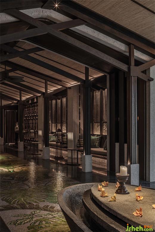 When Stilt Style Architecture are abstracted and reshaped,The array sense of the framework is strengthened, forming part of the "ceremonial sense" in the space.The touch of the log is presented in a new color, quality and shape,The bottom steps and stone piers, which are the cornerstones of the building, are softened into texture materials and laid out as the background color of the space.