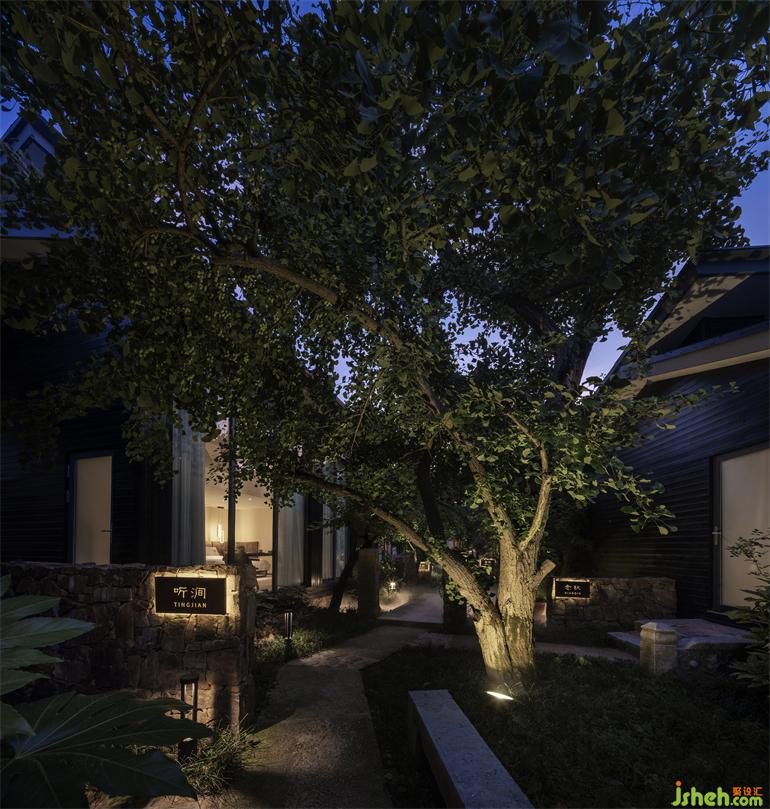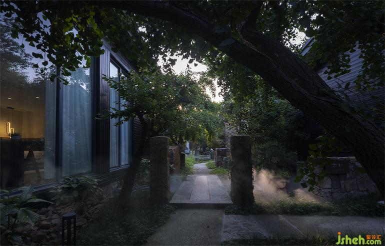 位置變化產生的視覺變化。民宿改造室外的現(xiàn)有場地、分散的小體量單體建筑,各自孤立,說大不大,說小不小的地塊,如何讓建筑之間產生聯(lián)動是我們需要探索的問題。作為太湖邊的建筑,我們考慮用水與橋去連接這些建筑,民宿改造用時間的痕跡去做這些建筑的紐帶。石板、石雕、青瓦、石柱,用水從橋下過、從房屋下過、叢樹下流動。聽水的聲音,看晃動的光影,鳥的跳躍與魚的游動,或許這才是生活的樣子。