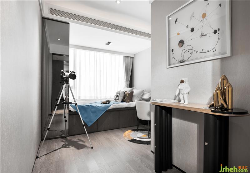 主臥的色調(diào)有一種寧心安神的吸引,深圳室內(nèi)設(shè)計(jì)師背景墻褐色和米黃的硬包組合似是一劑助眠的良方;一日的勞作后,能夠無(wú)慮的安心入眠,無(wú)疑是件極其美哉的事情了!