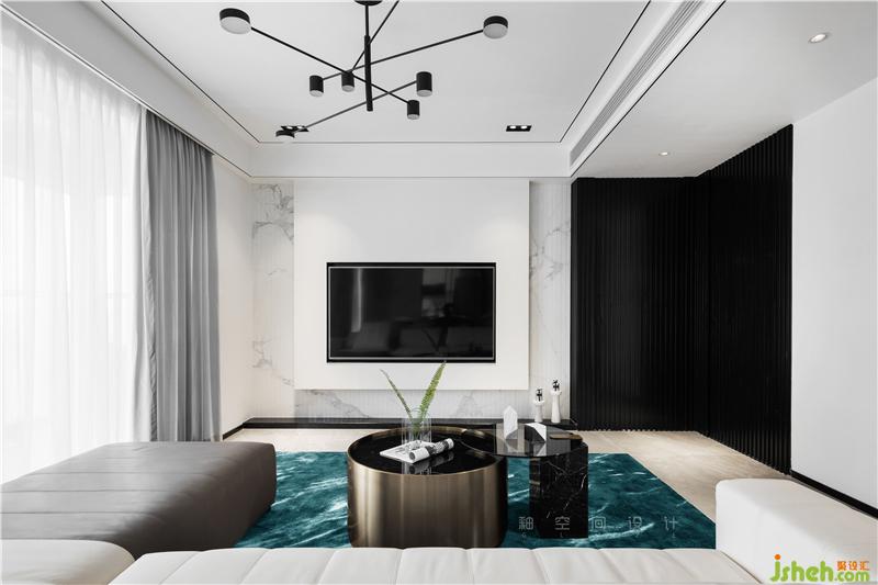 天花和燈具、電視和背景墻、墻面的木格柵和柜體、裝飾畫和方幾,各自成景,且互相成就。黑與白的對(duì)視,深圳室內(nèi)設(shè)計(jì)師正是一次次與自我內(nèi)心精神世界的對(duì)視,如同指觸大理石的清冽細(xì)膩般驟然心靜;嘈雜、糾結(jié)、懊惱、怨恨、憤怒...此刻通通化為了一池碧綠,心如止水。