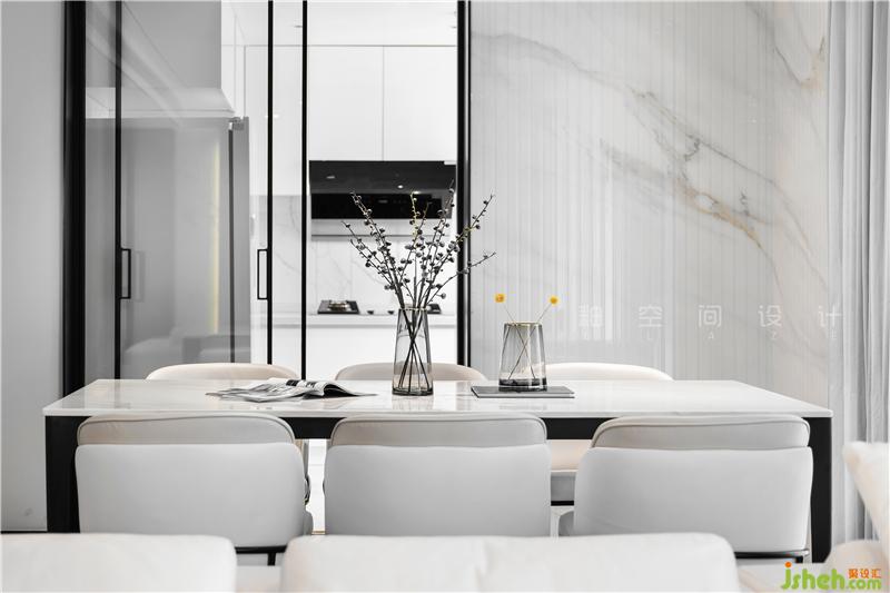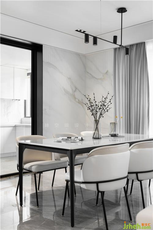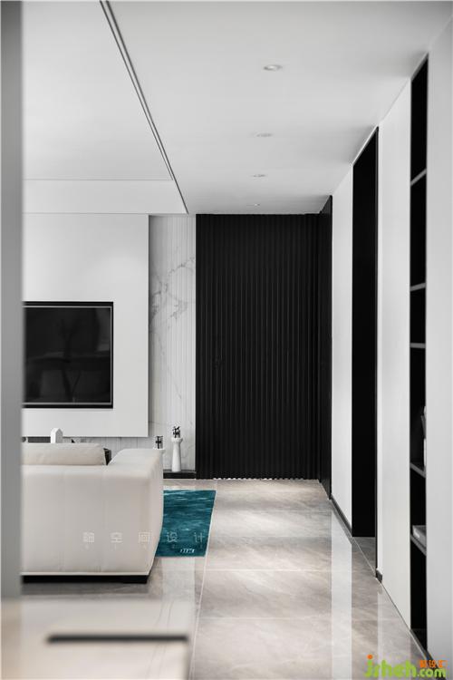 全屋整體以黑白灰為主基調(diào),展現(xiàn)出一個(gè)澄凈明亮的極致空間,干凈利落又張力十足。