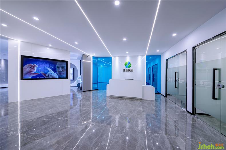 本案室內(nèi)設(shè)計秉承現(xiàn)代、簡約、大氣的基本設(shè)計原則,融入時尚、人文的因素,辦公室設(shè)計既汲取了生物基因行業(yè)特征,又體現(xiàn)出科創(chuàng)型公司獨特的企業(yè)形象和文化。最初的設(shè)計靈感來源于生物基因序列,以動感、靈動的折線形來進行平面布局,模糊了空間界限。