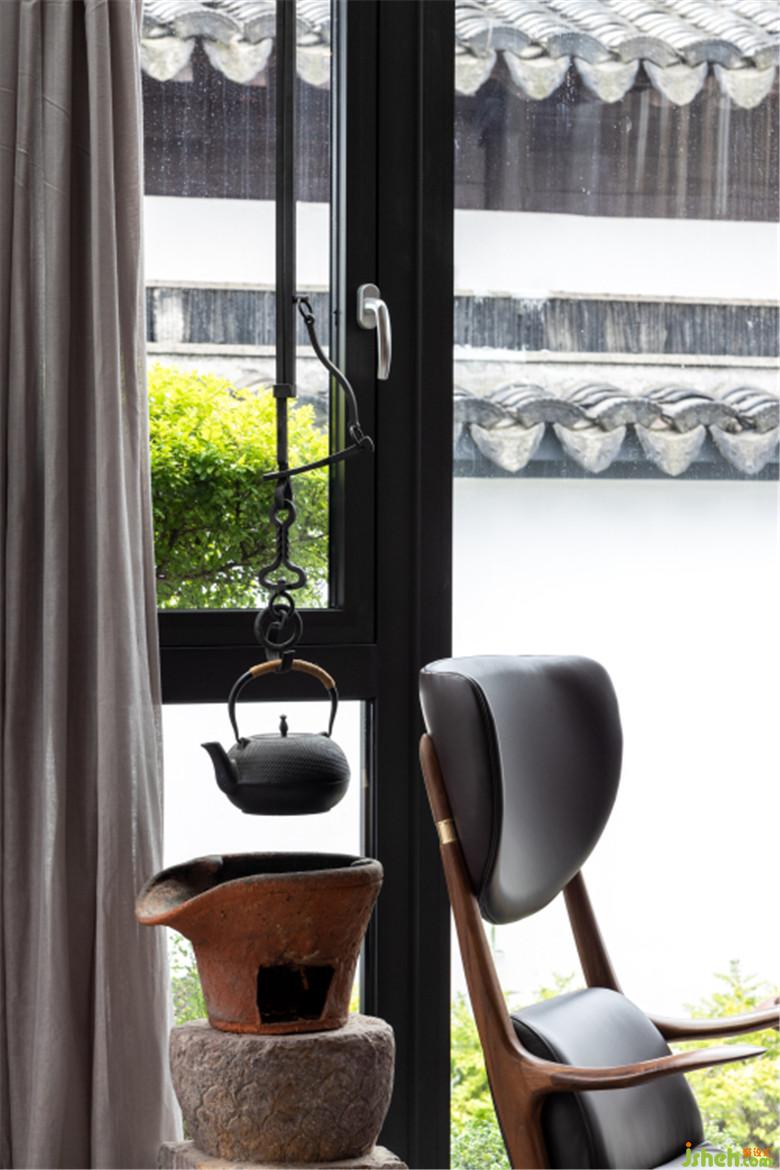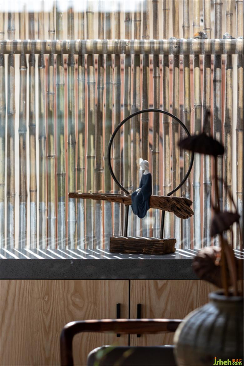 大大的落地窗,水缸中的山形造景……