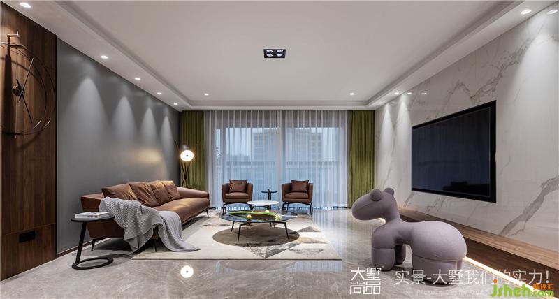 除去多余的修飾,黑色電視鑲嵌在大理石的墻面中,憨態(tài)可掬的小馬座椅為空間增添了幾分靈動的樂趣。
