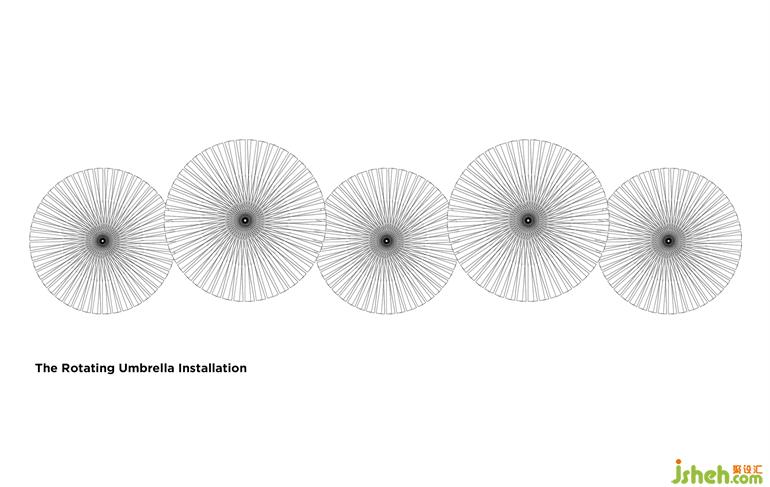 屋檐與中間旋轉(zhuǎn)的雨傘裝置