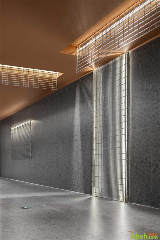 影城設(shè)計(jì)光源與天花金屬網(wǎng)的關(guān)系:從不同的角度可以看到光線透過網(wǎng)格產(chǎn)生的光暈