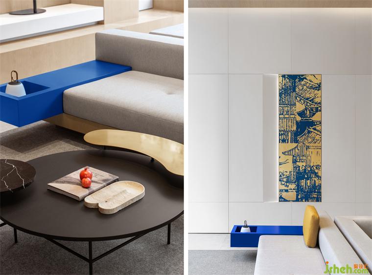 空間中設(shè)計的金箔漆畫和屏風(fēng)都抽象的展示了古城景象,以此回應(yīng)古城韻味。