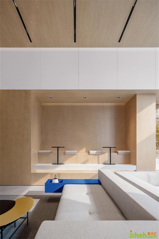 溫暖的調(diào)性和多樣化的座位形式滿足了不同時段的使用需求,除此之外,極氪中心西安南湖金座展廳設(shè)計規(guī)劃了一個獨立的長桌閱讀室以滿足安靜閱讀的需求。
