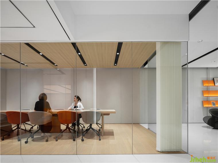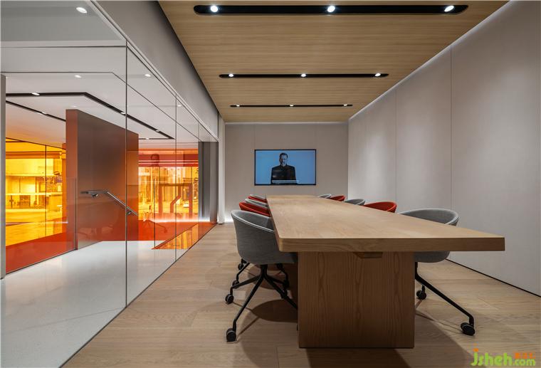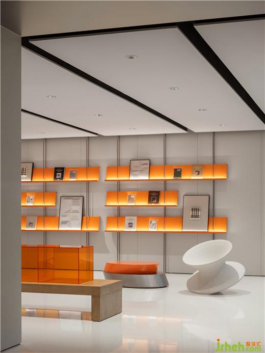 樓梯連通至二層的藝?yán)葏^(qū),極氪中心展廳設(shè)計(jì)通透的展廳為活動(dòng)和展覽提供了空間,包括一個(gè)可供社群活動(dòng)使用的會(huì)議室和開敞的展廳——這是一個(gè)更加靈活、開放、可變的空間,鼓勵(lì)人們探索空間與生活互相激活的可能性。