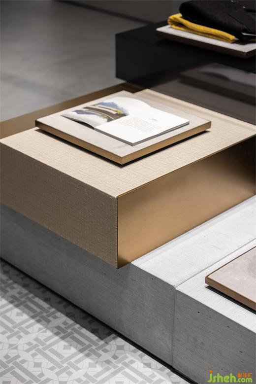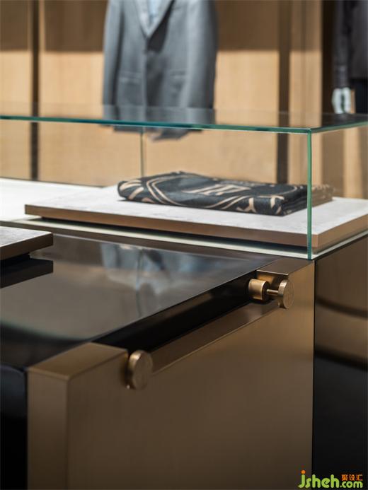 這個(gè)區(qū)域內(nèi),設(shè)計(jì)師追溯定制的概念,以皮尺的刻度為元素打造精品定制墻,呈現(xiàn)精致嚴(yán)謹(jǐn)?shù)木赓|(zhì)。