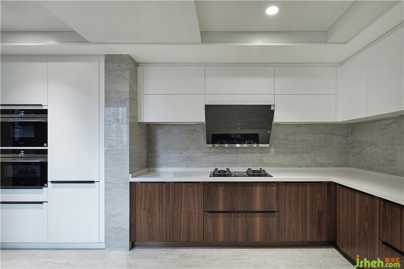 為了追求視野的開闊和光線的自然,把常規(guī)性的陽(yáng)臺(tái)納入客餐廳的室內(nèi)空間,開放式的西廚讓公共區(qū)域的靜謐時(shí)光更具儀式感。閑暇的時(shí)候,與心愛的人在這里共進(jìn)早餐或者下午茶,在都市快節(jié)奏中常享家的自由從容。