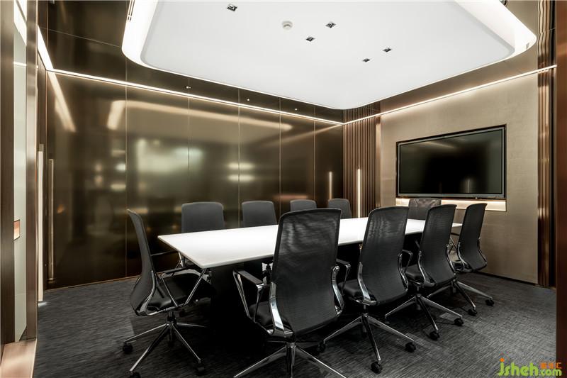 前廳空間意念由接待臺LOGO標(biāo)識的水、木之形開始,延伸至水波紋形狀的石材背景墻,頂面寓意星空未來感的燈飾點(diǎn)綴在智慧城市的暢想中,共同構(gòu)筑一個(gè)融于自然的人性化科技美學(xué)空間。辦公室設(shè)計(jì)