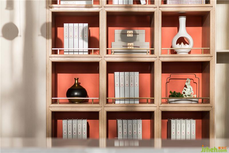 簡潔又不失裝飾性的造型語言所表現(xiàn)出來的基于線條裝飾性,靈活運用重復(fù)、對稱、漸變等設(shè)計手法,使幾何造型充滿詩意和富于裝飾性。博古架也是設(shè)計師所特別打造的亮點之一,這種不刻意不夸張,自然流露的設(shè)計于無聲中印入心靈,留給人與自然、美學(xué)更多的對話。