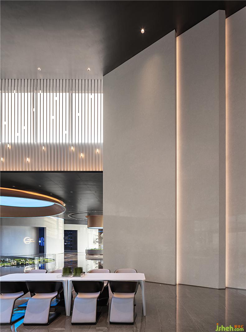 以點(diǎn)繪圓、思想延伸,是這個(gè)項(xiàng)目在理念和故事上的共性,基于手游、電競(jìng)蔚藍(lán)科技的想象,室內(nèi)團(tuán)隊(duì)以星為象的宇宙空間概念引發(fā)建筑園林景觀(guān)設(shè)計(jì)的連續(xù)性思維,在未來(lái)科技主題中還原一個(gè)和諧共生的宇宙家園成為這片領(lǐng)域的共同夢(mèng)想,室內(nèi)展示空間是這片未來(lái)家園的縮影。