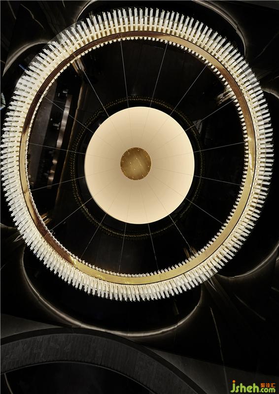 管弦樂器材質(zhì)運用在整個大堂和走廊空間的裝飾中,連接大廳與走廊音樂殿堂空間主題,設(shè)計師在收銀臺后面風管琴造型背景墻上,開啟現(xiàn)代版“歡樂頌”樂曲的彈奏。