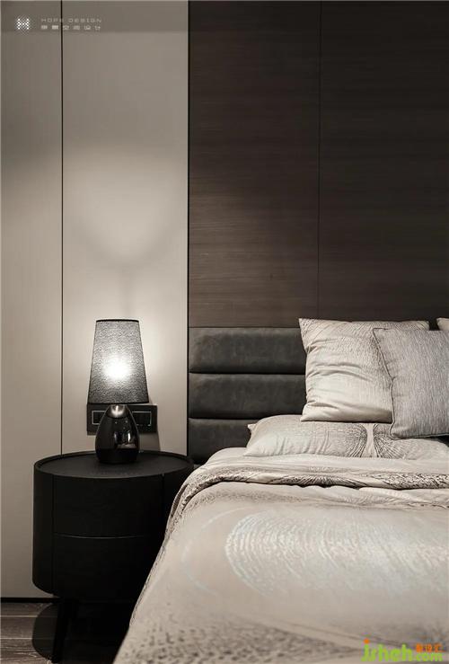 臥室是放松自我的最好安全區(qū),獨立私密,回歸本我。床頭背景采用咖色木質(zhì)墻板加灰色軟包,同色系軟包和床頭柜糅合,背景墻板與地板色系相通,燈光映襯質(zhì)感絕佳深圳裝修設(shè)計。