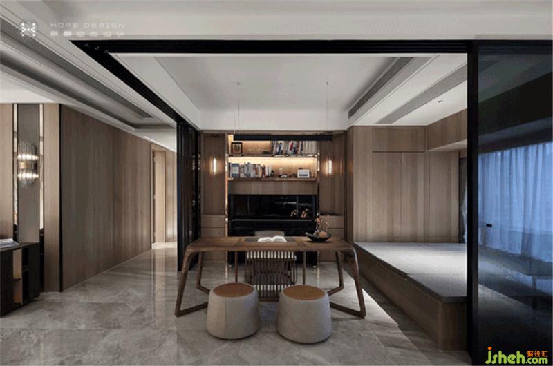恰當(dāng)?shù)牟牧线x配,通過材料的質(zhì)感,進(jìn)一步豐富空間形態(tài)變化,組合效果自然和諧,易于得到統(tǒng)一的視覺效果。不同材料的綜合運(yùn)用,和諧共處,體現(xiàn)了傳統(tǒng)與現(xiàn)代的融合。