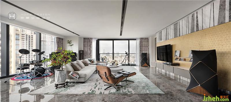 以MODERN ART -DECO的曲調(diào)譜寫一首獻給流金歲月的歌,運用金屬材質(zhì)的烘托讓它得以播放,相互交織、拼接的紋路讓空間元素更加豐富,而其本身獨有的延展性特點使得客廳更加多元化且充滿質(zhì)感。