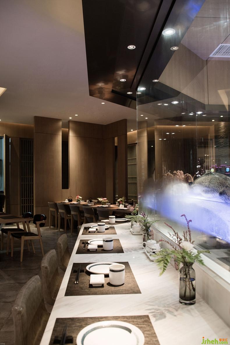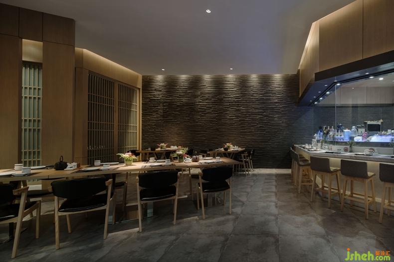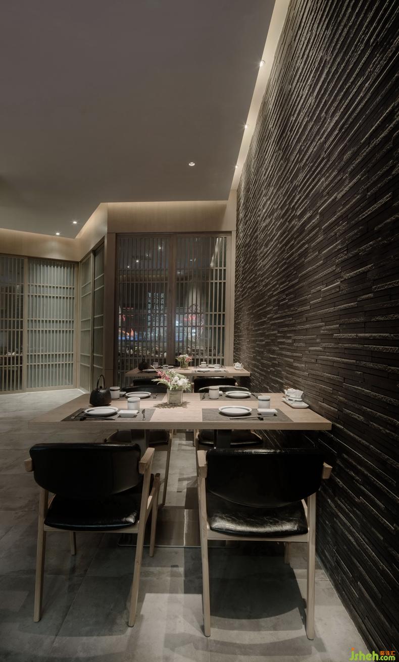 本案中設(shè)計(jì)師的目的是將餐廳打造成一個(gè)簡約寧靜、回歸理性的就餐環(huán)境,讓材料展現(xiàn)其本身的樣貌,讓美食回歸其食材的本質(zhì)。