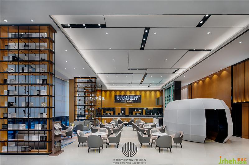 現(xiàn)定位集建筑外觀、銷售中心、辦公區(qū)于一體的綜合性建筑鉆形主題結構。具有綠色人居屬性的醇熟社區(qū),室內遵循簡約明快設計手法運用裝飾點線星空隱喻,為空間增添輕快明亮的現(xiàn)代港式的時尚空間,傳遞當代美學理念和真正詩意棲居態(tài)度。