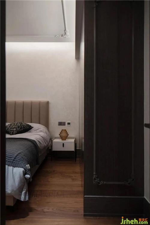 Of parent room reside the right side of the sitting room, mix properly with concise line and simple colour, replace marble with woodiness floor, let dimensional temperament more lukewarm embellish. Geometrical droplight and the adornment of element picture frame picture, make the bedroom more fill not drab.