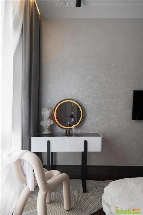 主臥則以低雅不爭的灰與木材鑄就輕奢的優(yōu)雅形制,賦予空間豐盈飽滿的美學質(zhì)感。綿延出寧靜的詩意。大面積窗戶增加了室內(nèi)光源,窗簾選用了純白雪紗營造靜謐舒適的簡單空間。在置入法式家具及配飾元素與現(xiàn)代家具相互結(jié)合,令空間充滿了時尚氣派的高雅感溫州裝修設計。