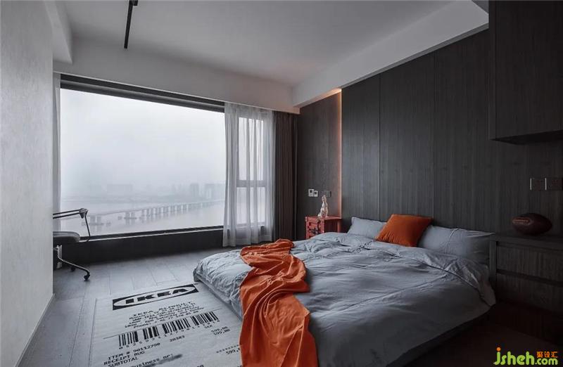 寫意而柔美的配色(灰色墻板搭配桔紅色軟裝)