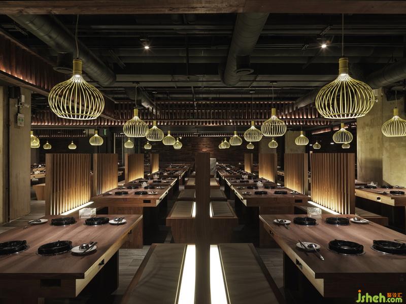 七百余多座位,處處擁端景。多向動線多處節(jié)點中,以大小端景延續(xù)焦點,使空間區(qū)塊豐富更俱可看。視覺原素延續(xù)品牌調(diào)性統(tǒng)一,有木作裝飾錯落、垂直性格柵、東方元素藥柜、藥盒、栓馬柱、燈籠等,取材皆用心尋覓于兩岸多處。中有一處對花大理石,以枯木山水黑白階為其紋理韻致相俱自由奔放。位席間以立面呈紋理玻璃崁黑鐵件錯落穿插于席間的通透隔屏,為大空間中的座位領(lǐng)域形式作出區(qū)隔劃分。室內(nèi)設(shè)計師