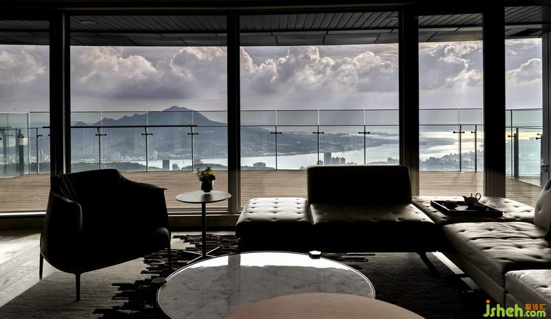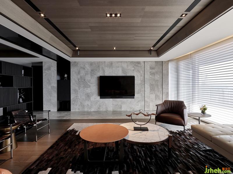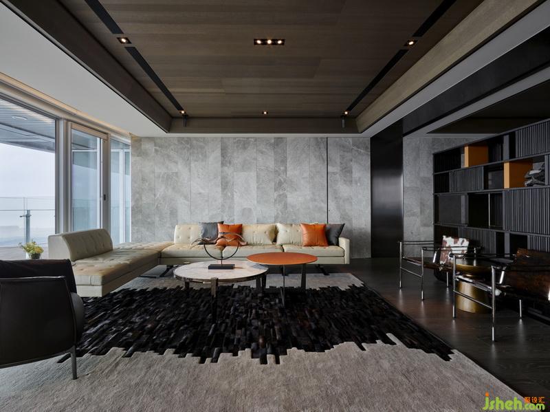 溫和木質與石墻延伸至用餐區(qū)域,墻面延伸至天花板的黑鏡框架區(qū)分了客廳與用餐區(qū)域,鏡面圓桌反射出上方的燈具,有如靜止的水面照映出天空的云朵,墻面的植栽畫作點綴了畫面,彷佛與遠方的山對話著,讓用餐空間的流動感在溫潤的氛圍中被表達出來。墻面的垂直分割與地坪的水平線條彼此呼應,兩者有著和諧的對應關系,但讓空間更為理性與內斂。室內設計師