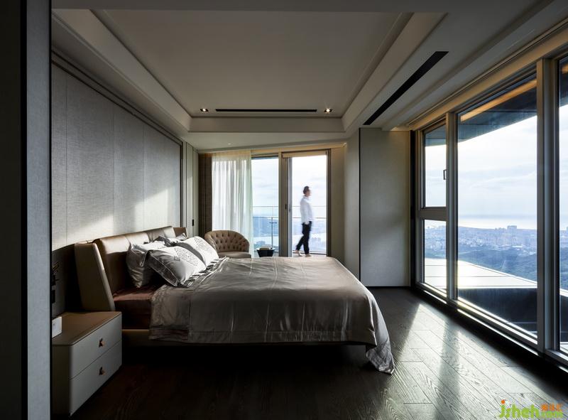 臥室的落地窗透出的光影更加顯現(xiàn)了木紋與天花板線條的質感,使空間明亮寬敞而富有層次。不同深淺的皮革溫暖的包覆了床頭空間,加深主床在整個臥室空間的存在。壁布與鐵件在光影之下,營造了溫和的安全感。溫潤的家具增加了空間的溫度,讓用戶在安靜的日光之間,駐寫與家人之間的生活記憶。室內設計師