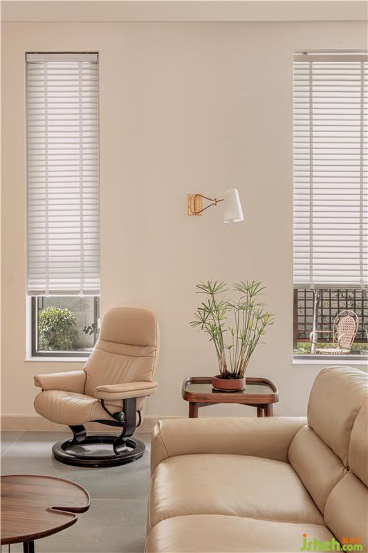 與墻面同色系呼應(yīng),內(nèi)斂不張揚(yáng)圓潤(rùn)的墻角、邊沿,消磨生活的沖擊與瑣碎