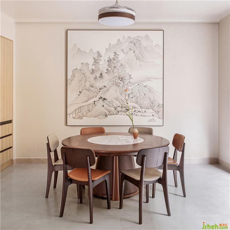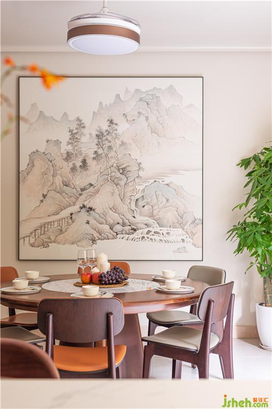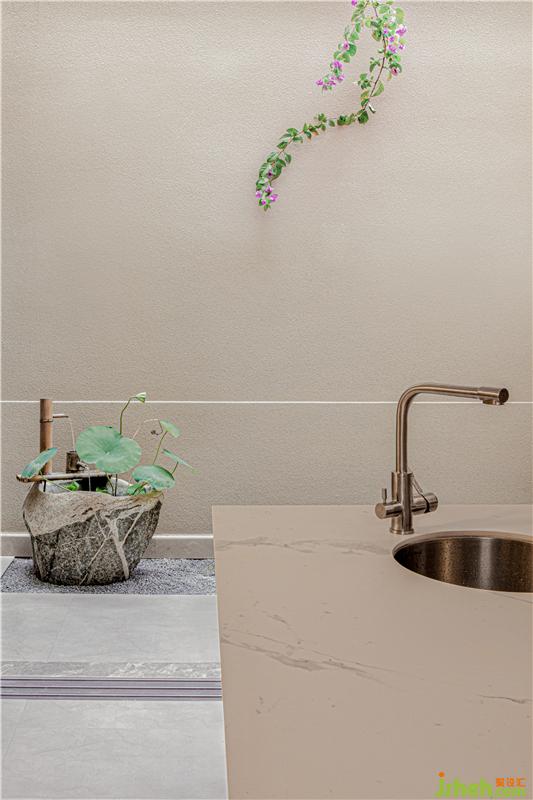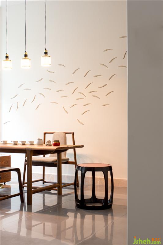 把竹葉新中式裝置點綴天井墻上由下往上,是積極生長的力量舞動旋轉(zhuǎn),方寸間,感知主人對陽光的向往同時也追求一種積極的生活態(tài)度!