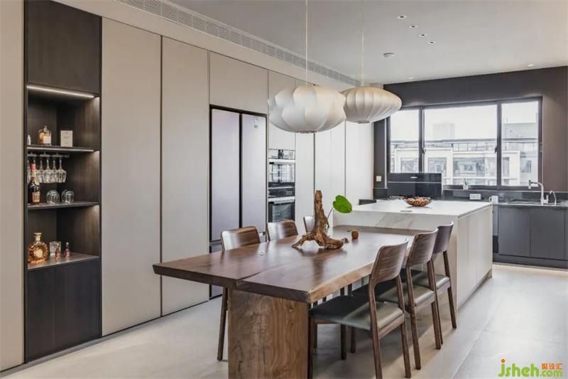 餐桌和寬大的吧臺(tái)相連,