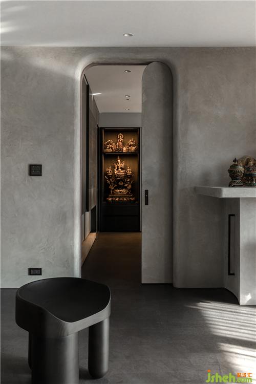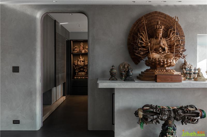 西藏、搜藏、藏所。起源于一位有搜藏密宗佛像多年的業(yè)主,佛像數(shù)量可觀,如何打造一個(gè)以佛像陳列為主,居家生活、冥想打坐為輔的藏所? 亦是此空間的關(guān)鍵特色。