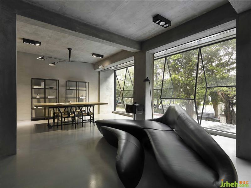 座落于幽靜巷弄里的方正空間,面對著一大片的連續(xù)樹景,用鉆石切面的語匯構境,試圖透過不同的角度捕捉綠意,窗戶上下左右的錯置分割,可以看到不同畫面的場景,自然的景色中,多了層次變化及光影轉折,多重視野的重置組合,隱喻著創(chuàng)意工作者的不同眼界,創(chuàng)新求變的思維及追求完美的精神。