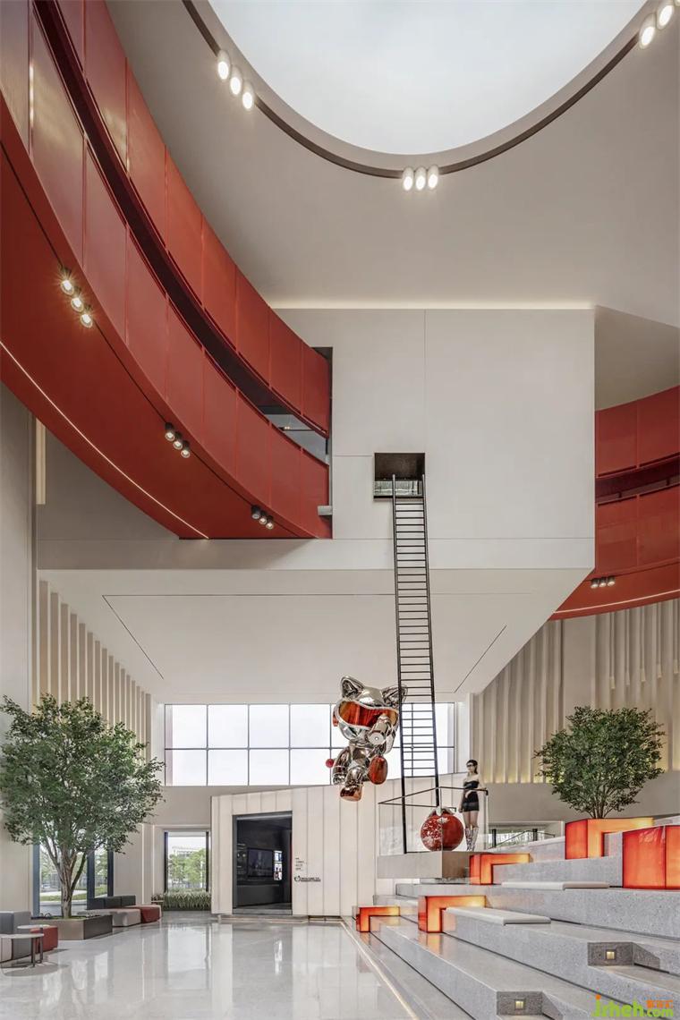 色彩仿若協(xié)奏的樂曲。陳設(shè)美學(xué)的建造不是隨意擺放,裝修設(shè)計而是基于對空間整體氛圍的營造。在略顯冷峻和理性的冷色調(diào)和直線條中,點綴著生機(jī)的綠意和漸變的紅色體塊。