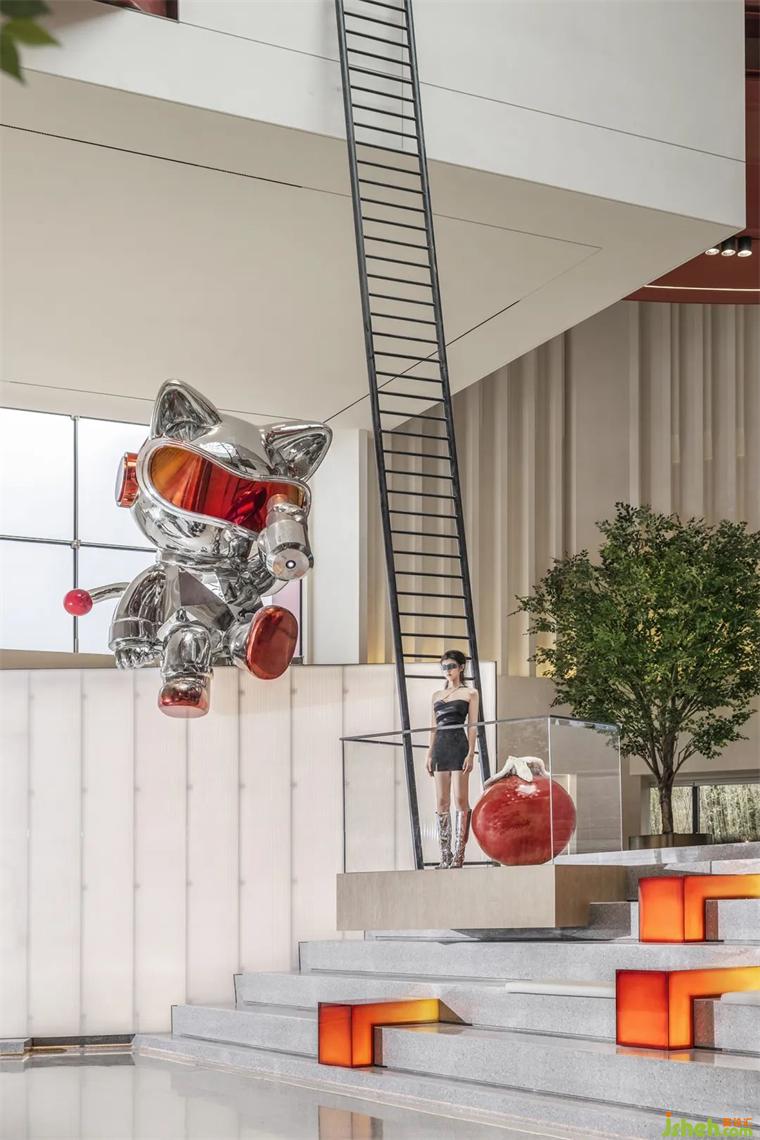 關(guān)于品牌的未來我們有著無限的想象。品牌科技金貓化身品牌的探索代言人,裝修設(shè)計居于空間高處以探索者的姿態(tài)出現(xiàn),靈動豐富了空間的整體氣質(zhì)。富有光澤感的外形賦予它十足的未來氣息,豐富的好奇心探求品牌未知的潛力。