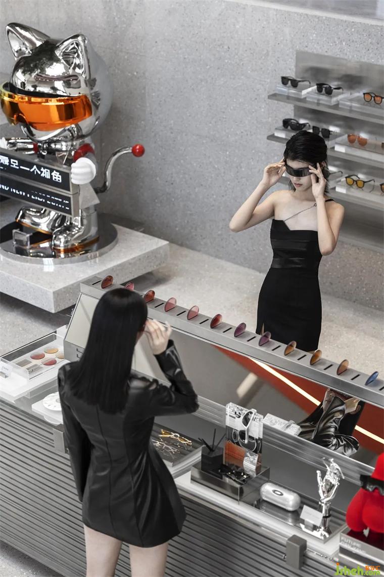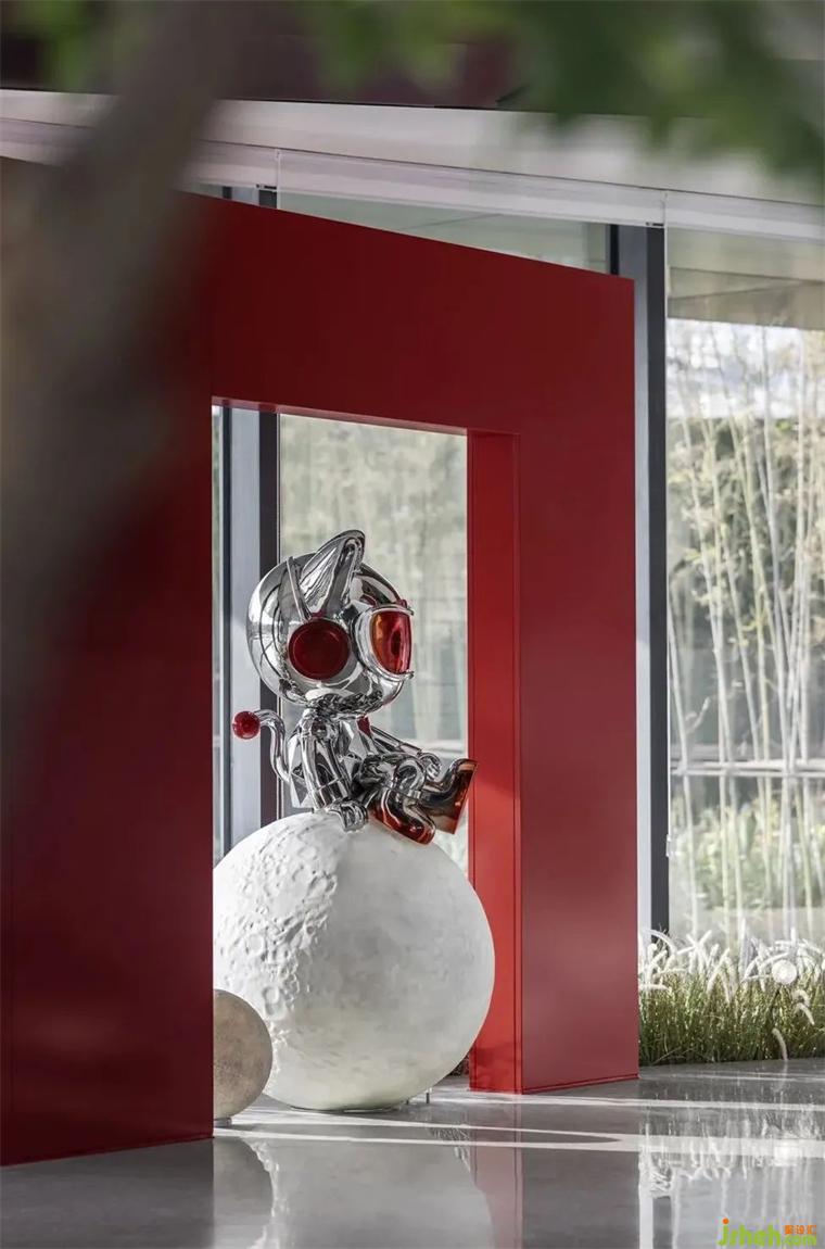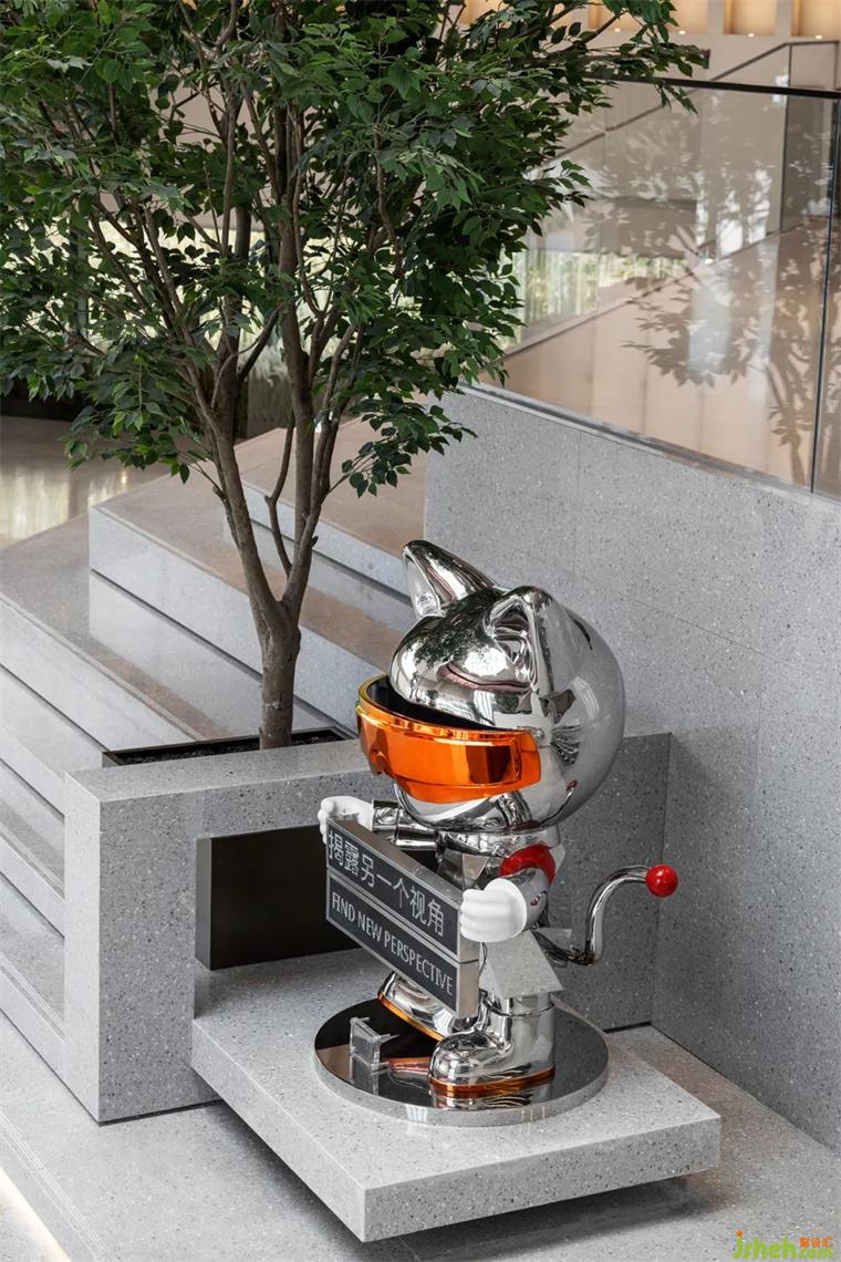 盒子櫥窗處有只萌趣的精靈——月球科技金貓,它略顯恬靜的姿態(tài)顯得尤其美好,一派沉思的模樣讓人不由得跟著一起思索起來(lái)。裝修設(shè)計(jì)將其與月球的形象相關(guān)聯(lián),不僅僅是天馬行空的想象,更是對(duì)生活的無(wú)限期許,月球讓我們的思緒飄遠(yuǎn),柔和的月光更讓我們沉靜下來(lái),放慢腳步駐足思考本心,尋找內(nèi)心深處治愈的能量。