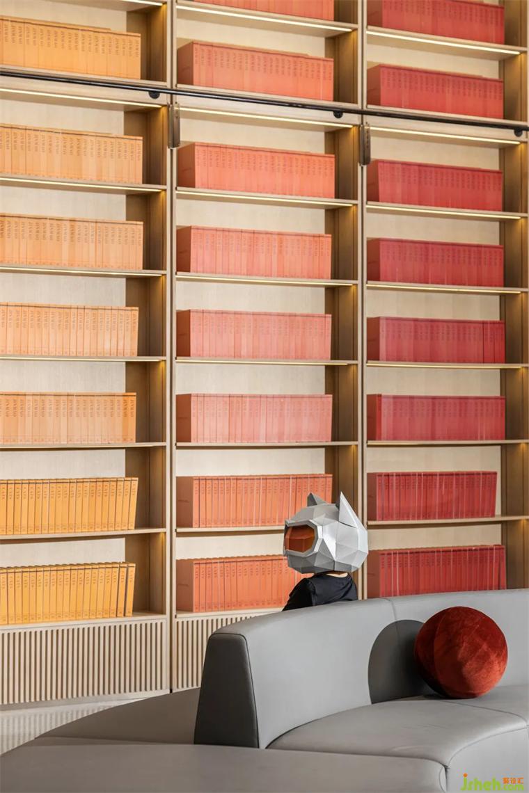 身處夾層書屋,不僅可以休憩更可以學(xué)習(xí)閱讀。裝修設(shè)計(jì)整齊排放的書籍,可以讓人們了解關(guān)于貓的一切博物知識(shí)。在書籍的設(shè)計(jì)上,不僅追求藝術(shù)的美感,在內(nèi)容上也富有創(chuàng)意、充滿新知。