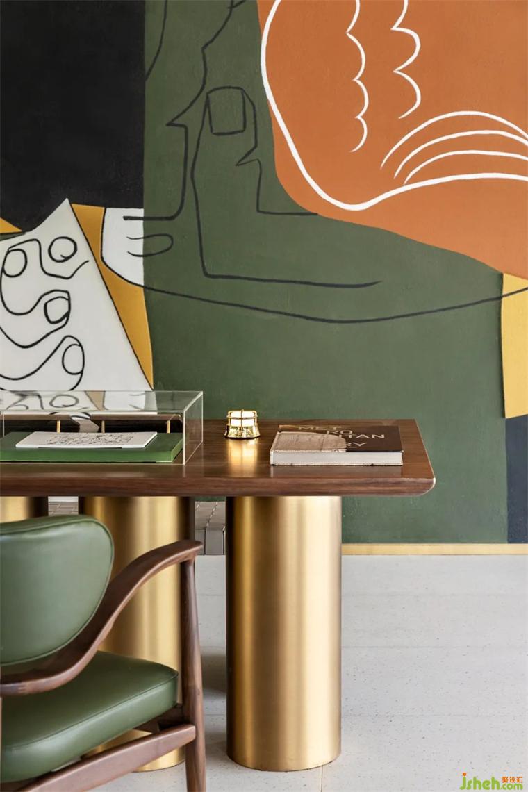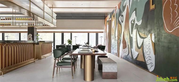 大面積溫潤(rùn)的木質(zhì)結(jié)構(gòu)導(dǎo)入空間中,金屬色調(diào)和,自然景觀和室內(nèi)的交流產(chǎn)生不同的氛圍。裝修設(shè)計(jì)軟裝設(shè)計(jì)師運(yùn)用強(qiáng)烈的解構(gòu)符號(hào),讓空間中藝術(shù)裝置的呈現(xiàn)形式或規(guī)整有序、或交織無序,標(biāo)榜著年輕與個(gè)性,時(shí)間與維度,重現(xiàn)著歷史時(shí)光。
