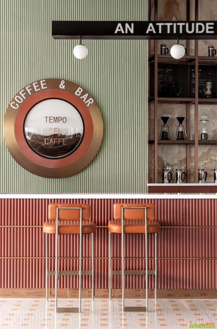 都市生活中的人們對于咖啡的熱愛是真切的,正如咖啡愛好者對于咖啡豆的品種也熟稔于心。售樓處設(shè)計在色彩選用上,綠色和紅色的輕微撞色,但最終在棕色為主色調(diào)的場域中實現(xiàn)了和諧。金屬材質(zhì)的使用,為空間帶來了摩登時尚的氣息。