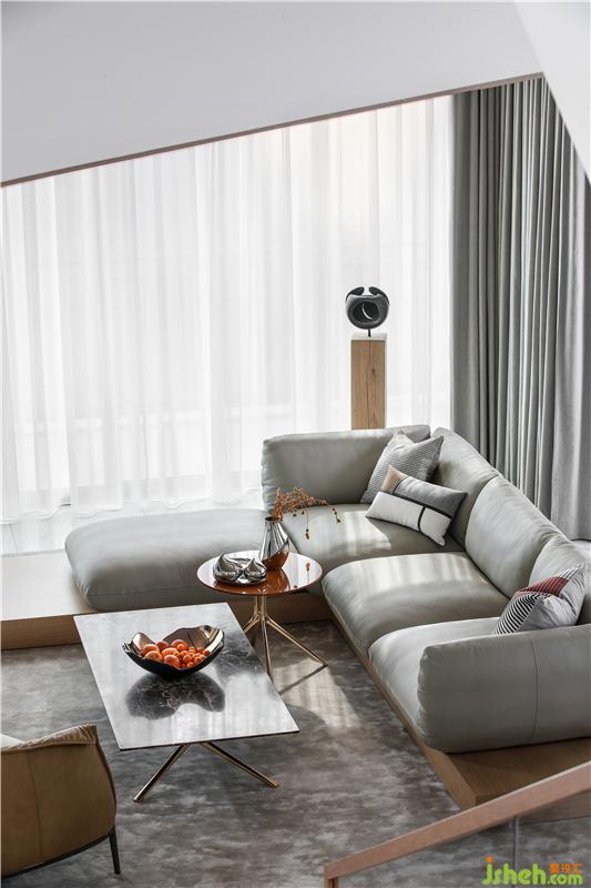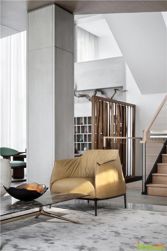 置身會(huì)客廳,與它溫吞細(xì)膩的質(zhì)感相迎,平添一種不疾不徐的從容心境。一切都柔和寧謐,沒有銳利的尖角,愜意休閑之外,更在意的是空間肌理帶給人心的沐春撫慰。