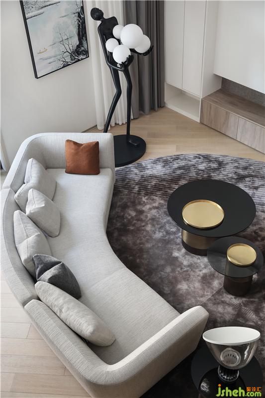空間將曲線的幾種幾何類型表達(dá)得淋漓盡致,并將“曲”的精神氣質(zhì)貫穿始終,將圓弧線的飽滿與穩(wěn)定,橢圓線的擠壓與拉伸,拋物線的對稱與方向,雙曲線的平衡與流暢,自由曲線的隨意與自然,巧妙交織在一起,形成了相對的規(guī)則性、秩序性和穩(wěn)定性,就像重慶火鍋對各類食材的接受包容以及將其融于老油鍋底所產(chǎn)生的醇香和諧。 吊頂、壁爐、沙發(fā)、電視墻中的圓弧線設(shè)計(jì),從形態(tài)上表現(xiàn)飽滿、穩(wěn)定的視覺效果??臻g以不同體量、相互交錯的平面圓弧為結(jié)構(gòu),實(shí)現(xiàn)了不同功能區(qū)域的劃分。走廊無規(guī)律的自由曲線形態(tài),充滿了飄動感與動人的詩意。各類曲線形態(tài)錯落串聯(lián),營造出優(yōu)雅、浪漫、溫婉的空間氛圍。