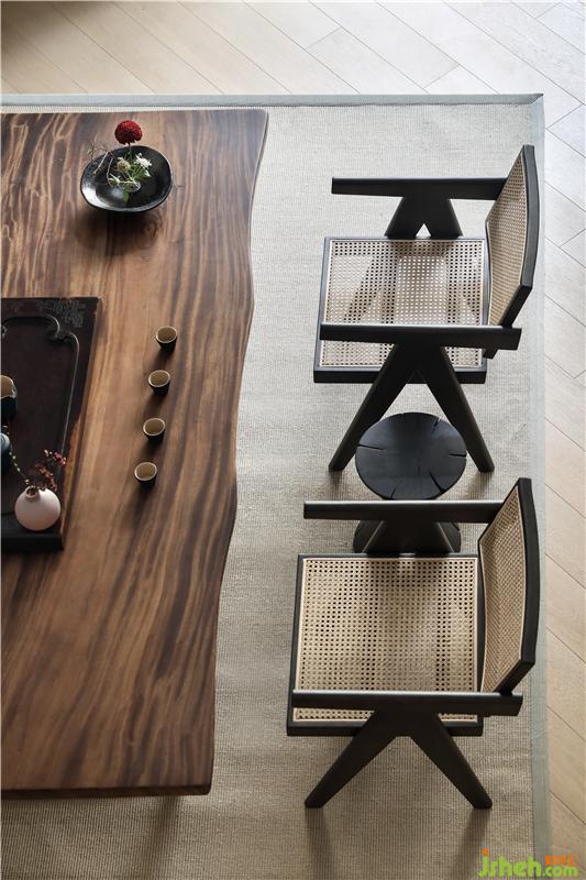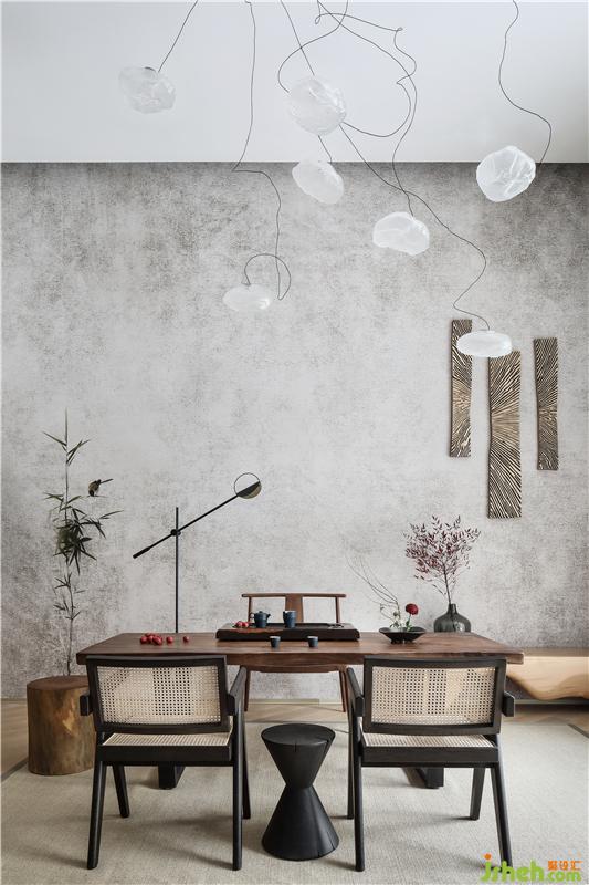原木、頑石、細(xì)竹、這些渾樸溫潤的天然材質(zhì),素樸稚拙,加之茶器、香茗、花藝,便營造出一種“禪茶一味”的品茶意境,淡雅空靈,物我兩合,與禪宗內(nèi)在的謙遜與修養(yǎng)相遇相融。