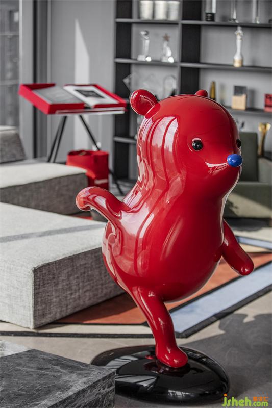 雕塑《奔跑》來自藝術(shù)家張占占最經(jīng)典的“小熊”系列,它有著俏皮可愛的形象,圓滾滾的身體,惹人憐愛的表情以及纖細(xì)的四肢,正擺出向前奔跑的造型,讓人忍俊不禁。藝術(shù)家張占占用這樣引起人感情共鳴的形象讓人在藝術(shù)作品中感受童真的好奇心與活力。同時,藝術(shù)家選擇紅色作為小熊的顏色,是希望更多的人注意到“小熊”,在空間中吸引人的視線,讓藝術(shù)在空間中的作用最大化。