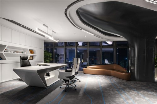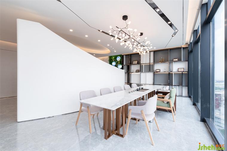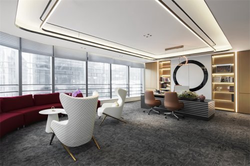 每一個(gè)空間的構(gòu)建都是一種秩序的建立,辦公空間設(shè)計(jì)其本身的功能性與人在其中與之相連接的方式共同構(gòu)成了空間內(nèi)特有的秩序,設(shè)計(jì)根據(jù)使用功能的要求,在空間的四分之一位置構(gòu)建了空間的橫貫交通線,橫貫線有機(jī)的分割出前廳公共區(qū)與接待區(qū),開放辦公與管理辦公,總裁室內(nèi)的接待飲茶區(qū)與辦公區(qū),空間的裝飾也圍繞展開。